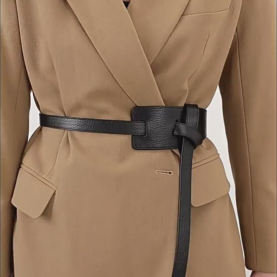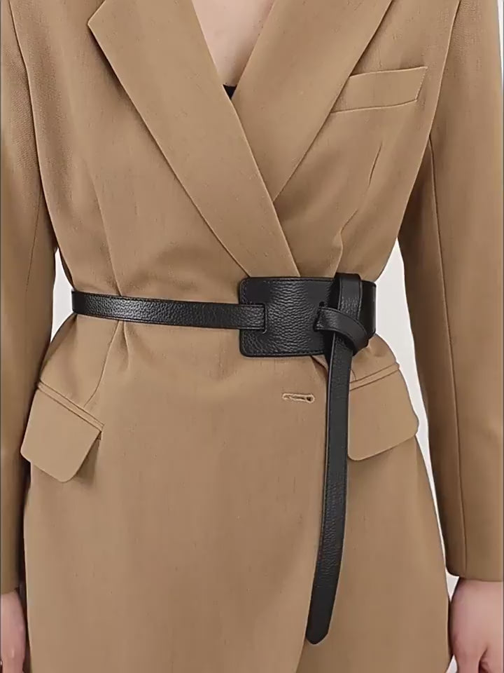 Elevate your wardrobe with our minimalist French-style knotted leather belt, exquisitely handcrafted from double-sided genuine cowhide for a soft, durable, and luxuriously smooth feel. This adjustable no-buckle belt is designed with a modern silhouette, perfect for accentuating the waistline on dresses, coats, or even dancewear.