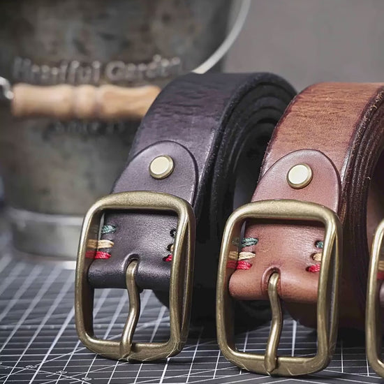 Elevate his style with our handmade full-grain leather belt, designed for those who value quality craftsmanship and a timeless, vintage aesthetic. Crafted from premium full-grain leather, this copper buckle belt is not only exceptionally durable but also ages beautifully, developing a rich, unique patina over time.